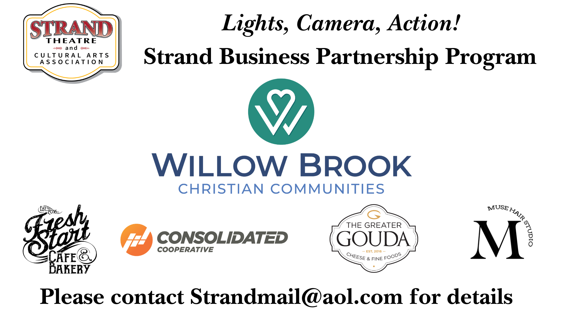 For information about the Lights, Camera, Action Strand Business Partnership Program contact Tracey Peyton at 740-816-1938 or strandmail@aol.com.